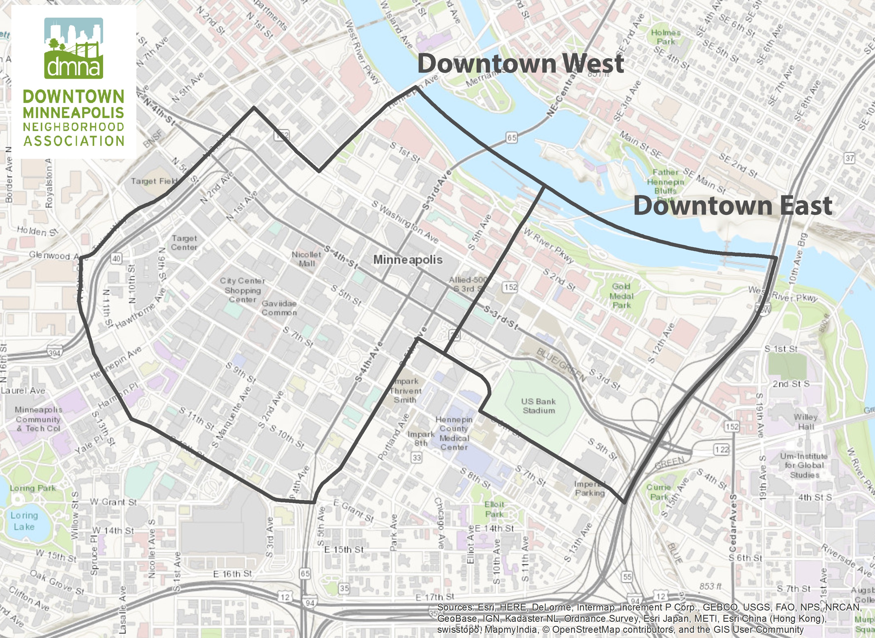 The Downtown Minneapolis Neighborhood Association, Inc. (DMNA) is a 501(c)(3), nonprofit corporation governed by a volunteer board of directors. It is recognized by the City of Minneapolis as the official neighborhood organization for Downtown East and Downtown West neighborhoods (click to see map). Anyone who lives, works, or owns property in Downtown East or West is eligible to volunteer, support, and become a voting member of DMNA.